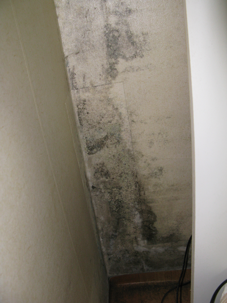 Up the wall...we're talking about huge patches of mold (square meters of it), not just a little here, a little there...